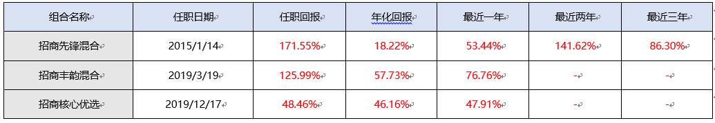 另一只基金招商丰韵混合,自2019年3月管理至今,累计回报125.99%。(截至2020.12.31,基金定期报告)