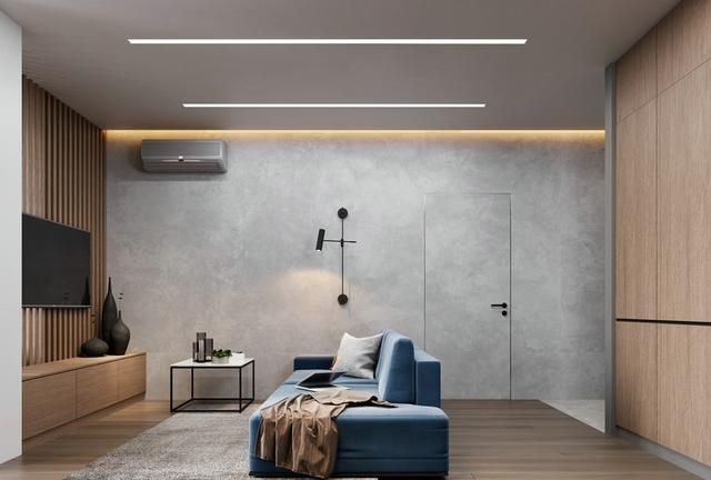 整个客厅的墙面,以混凝土为主,深灰斑驳之感,再搭配原木风的电视背景墙,看似小巧的家,拥有了温馨的氛围,两个人住在一起,或许才叫浪漫。