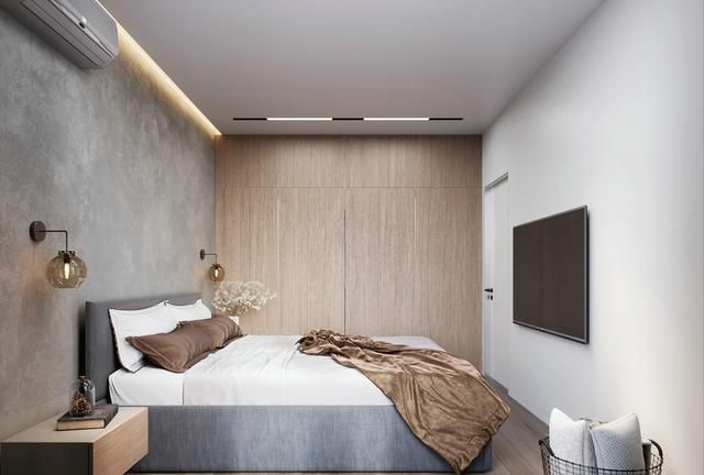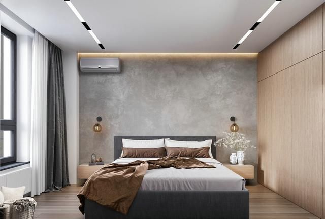 步入主卧空间,更显一派轻奢之感。床头背景墙以混凝土为风,无主灯的卧室设计,一扫繁冗之感,整个主卧给人的感觉,轻奢自然,毫无一丝豪华之感,却舒适惬意。