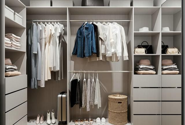同时为了满足女主人的衣物箱包储藏需求,设计师还加入了一组步入式的衣帽间设计,空间开阔,容量超大,日常衣物的储藏不在话下。
