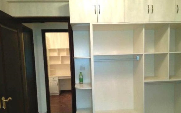 一样有定制的收纳衣柜,次卧的对面就是儿童房,装了组合书桌和书柜,收纳衣柜也都是有的。