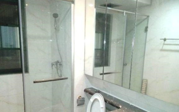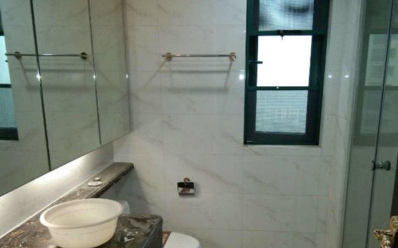最后我们看看客卫,基本上和主卫一个样,就是格局和方位比较不同。淋浴区在右边,装了玻璃房来实现干湿分离隔断。