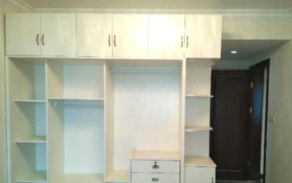看看主卧的收纳衣柜,占据一整面墙,最上面还有一排吊柜。