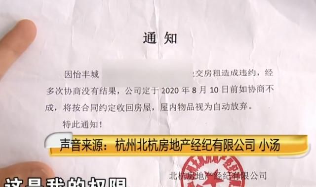 在中介多次向他催收违约金无果后,还给租客发来了一个通知,在8月10号前没把违约金补上,中介就要过来收回房子了,租客不及时搬走的话,屋内的私人物品就视为放弃,无奈之下租客也只能找来媒体曝光了。
