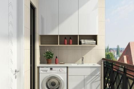 在装修新房阳台时,相信大部分人都是用阳台来晾晒衣服的,因为阳台是通风透气,又能直接照射到阳光的地方,在客厅阳台晾衣服是无可厚非的,也是效果最好的。不过,很多人家里阳台都只是晾晒衣服这一个单一的功能,偶尔会摆放一些杂物。这种阳台设计对我们小户型来说,着实是一种浪费。所以,为了能够让小户型的空间都得到充分的利用,很多人都会将客厅阳台改造成功能区,其中阳台改造洗衣房是大部分家庭都会选择的装修方式。