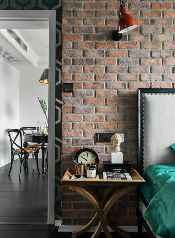 其中一间卧室的装修效果,床头背景墙居然采用砖形文化石来装饰,彰显个性的同时,更提升了卧室的装修档次和设计感。