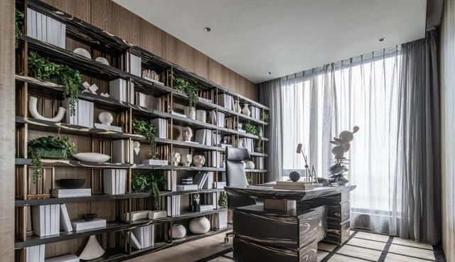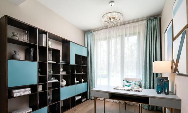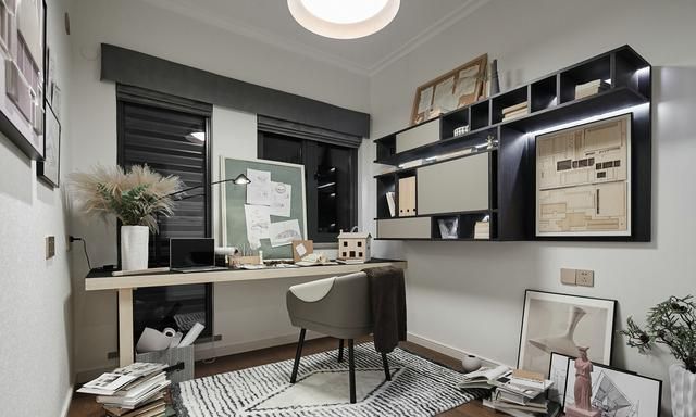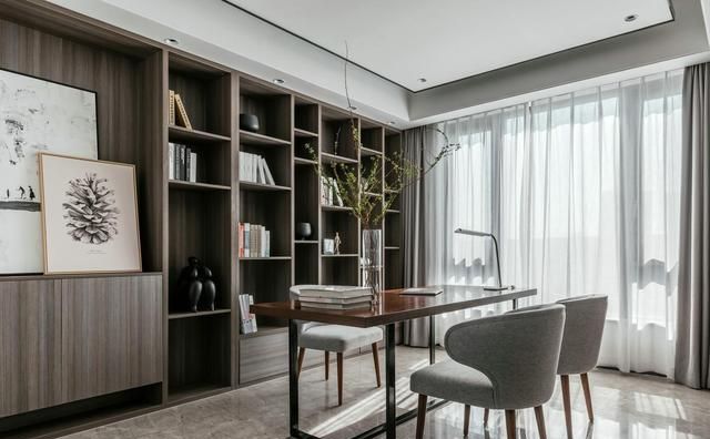 书房是一个需要让人能够静下心来学习的地方,因此尽量不做开放性书房,避免被家庭成员打扰。装修时,要选用隔音效果好的材料,如门用真空玻璃窗、实木门,墙面则采用隔音棉、隔音毡或者软包来达到消音作用。