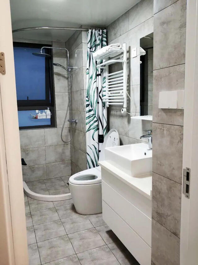 淋浴区对面的地方,放上了浴缸,这样一来是淋浴还是泡澡都是可以的。