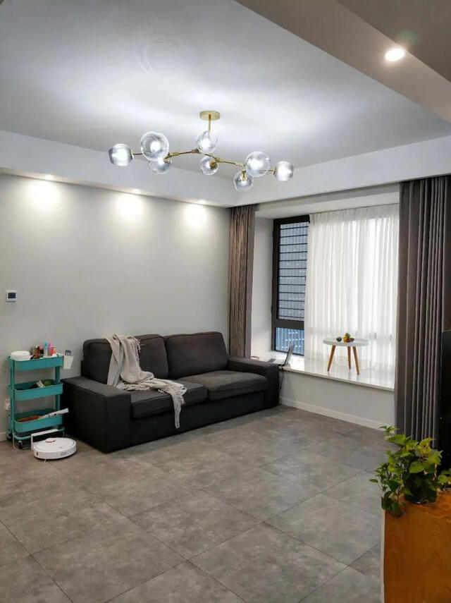 看着客厅还是挺大的,飘窗还能当凳子坐,坐在飘窗上有一个小茶几,一个人的时候那还挺享受的。