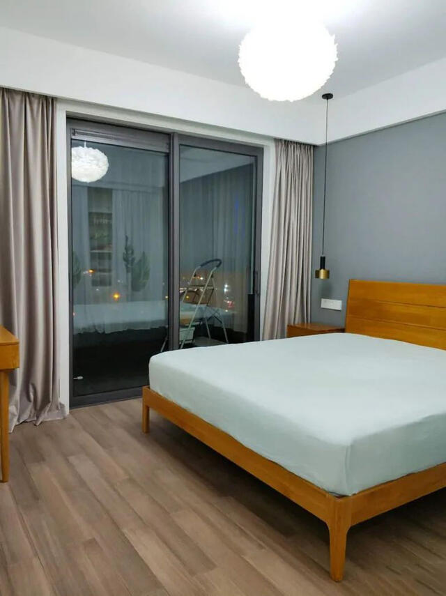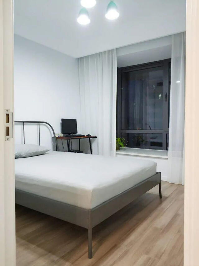 这是另外一个卧室,除了一些标配之外,还放了一个书桌。还有一个小飘窗,晚上可以在上面发发呆。