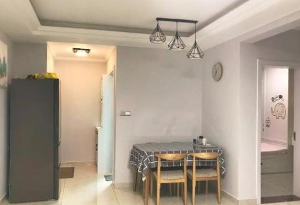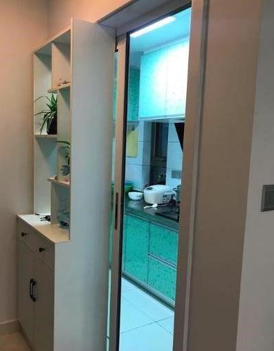 我们的厨房和餐厅的隔断用的是嵌入式的柜子进行隔断的这样的话,省了一些空间,还多了一些储物空间也比较的好。