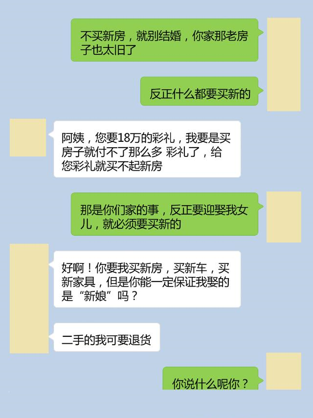 新房子迎娶新人,这是女孩妈妈的要求,你们新婚最好什么都要换新的,可是您说得容易,这都是要用钱来说话的,没那么多钱就总要有些地方不达标。小伙也是被逼无奈,说出了自己心里憋了很久的话,你要保证我的新娘子也是全新的。真不知道丈母娘会怎么想!