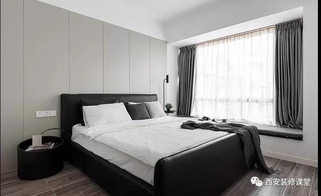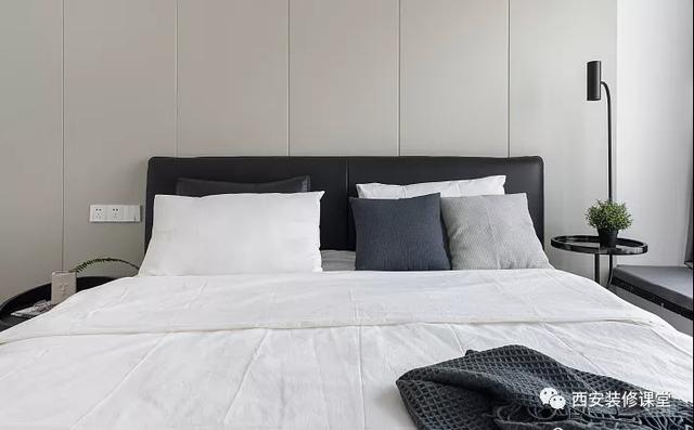 ▲黑色的皮质床铺,搭配白色的一床温柔,极度舒适