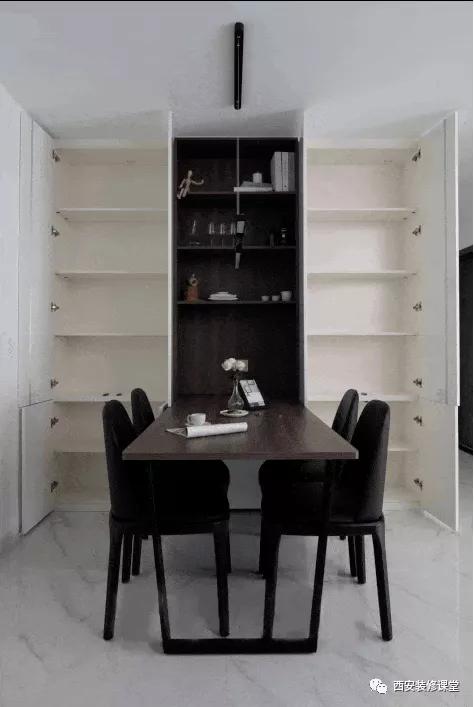 ▲嵌入式定制柜可以弱化柜体的存在感,让视觉更简洁,无把手极简收纳,可以满足公共区的杂物收纳