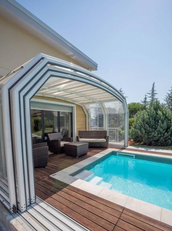 豪宅的福利来了!有游泳池的家庭也能用上,稍稍调整下开合的位置,即便关起来,这一侧也能充当遮阳顶棚,另一边就是妥妥的露天游泳池了。