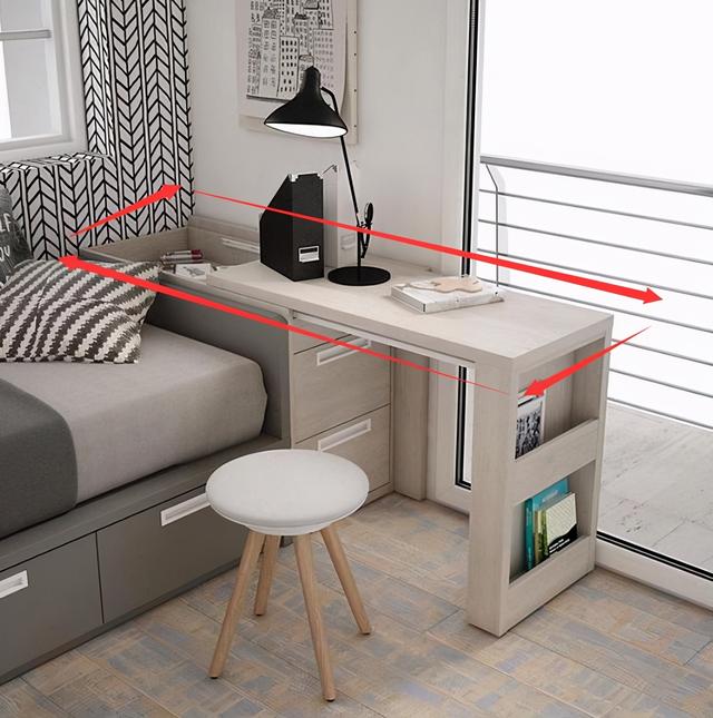 其实,邻居家是在卧室里靠墙打了一张榻榻米床,床头设计成一个30公分宽的床头墙和移动书桌,让小小的床头实现功能叠加。那么这样设计有什么好处呢?经过询问,邻居介绍说,是他找到的设计师非常机智,想出了这样一个好处多多的设计: