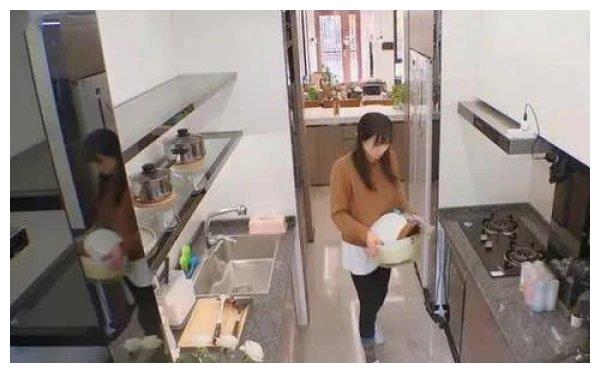 厨房也是这种风格,长款的厨房设计,一眼就能看到厨房的构造,这个设计可能也很郑爽的性格有关,不太喜欢花里胡哨的豪华设计,怎么简单怎么来。