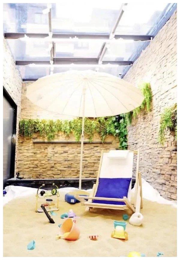 最让人喜欢的是郑爽家的玻璃房,不仅可以晒太阳还可以改造成沙滩房,把沙子倒进玻璃房,立马就能变沙滩独家圣地,摆上遮阳伞、折叠椅,当阳光撒下来的时候,沙滩的感觉立马就有了,在家就能体会到沙滩度假的感觉。