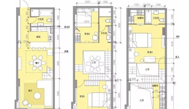 从户型图中我们能看出,女主人利用了8米层高,设计出上中下三层,