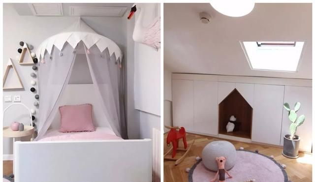 儿童房专门给女儿设计成而了粉嫩的公主房,粉色调与高级灰巧妙混搭,