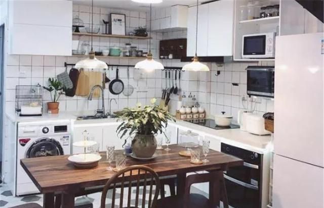白色橱柜+小白砖的极简搭配整洁又耐看,餐厅也在厨房旁,