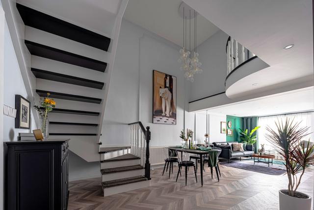 相较于传统的复式设计,给客厅做挑高,餐厅做隔层,这种反向的处理方式,不仅表现出了大气感,也将家的温馨做到了提升。不得不说,这个设计思维还是挺独特的。