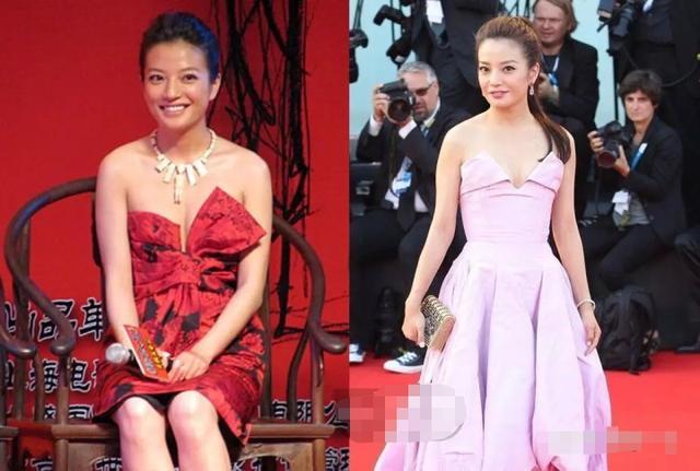 可赵薇在初期选择礼服时,经常是清一色裸肩抹胸裙,或是宽松款,赤裸裸暴露出脖子短粗、斜方肌大的缺点;再加上本人疏于管理身材,赵薇的礼服秀常常沦为土肥圆的翻车现场。