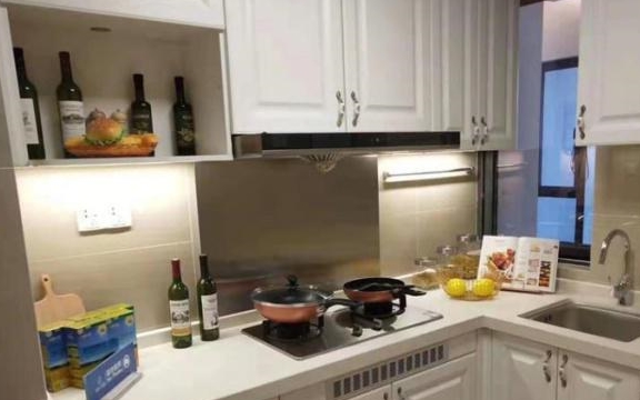 小小的厨房,装了橱柜和吊柜,白色看起来显大,所以没有让人感觉多紧凑。