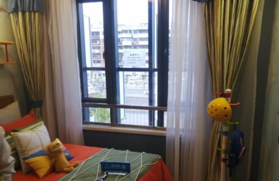 儿童房的空间最紧凑,墙壁上的墙纸充满了童真童趣。