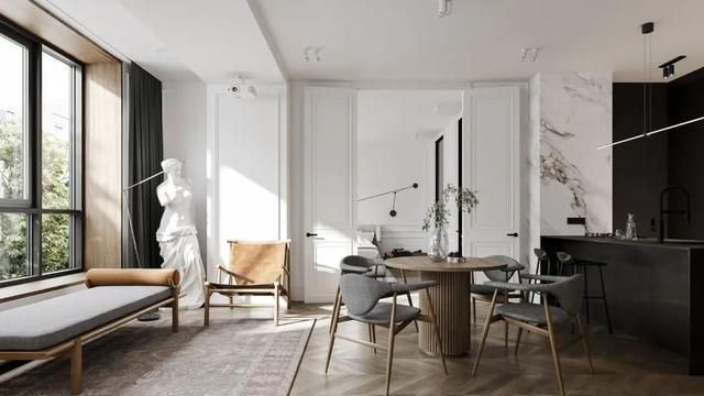 ①串联空间。洄游动线常用于客餐厅、厨房这几个公用空间中,让这些相互独立的空间被串联起来,也让各个功能区衔接得更加合理,从而方便生活、家务上的操作。