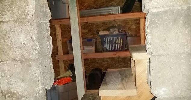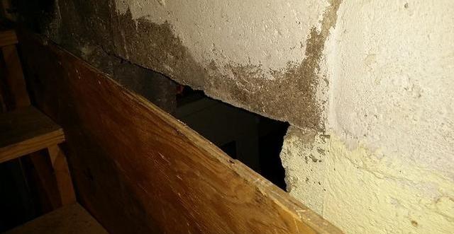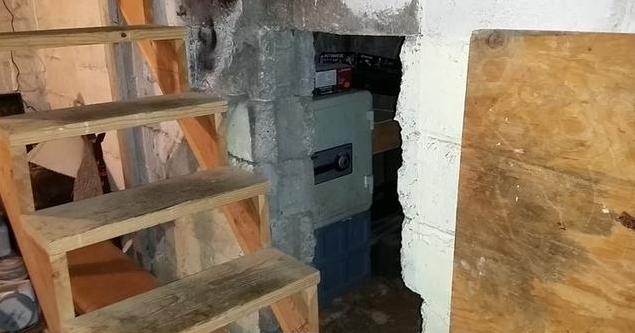 男子发现通往地下室楼梯旁的墙壁不同寻常,仔细查看之后竟然发现一扇暗门。