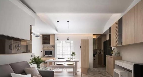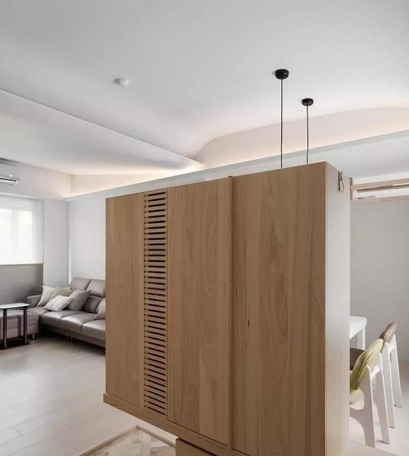 来到餐厅,可以看到玄关柜背面加入了一些小装饰,看起来蛮清新雅致的。