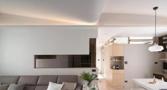 换一个方向是电视墙,考虑到一家四口的收纳,不造型不装饰,直接打上满满的柜子,非常实用。