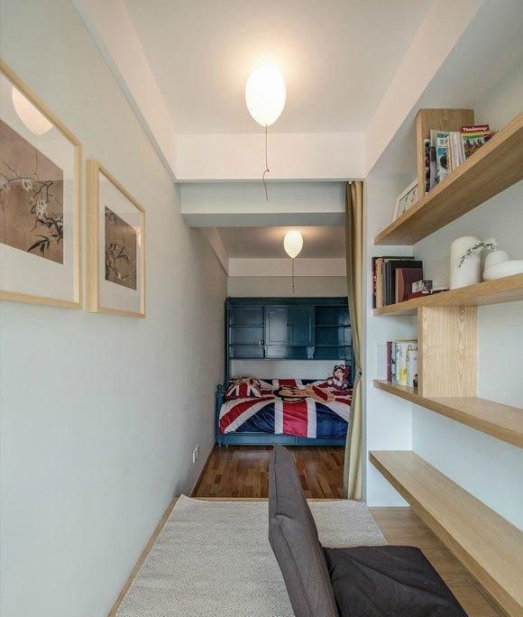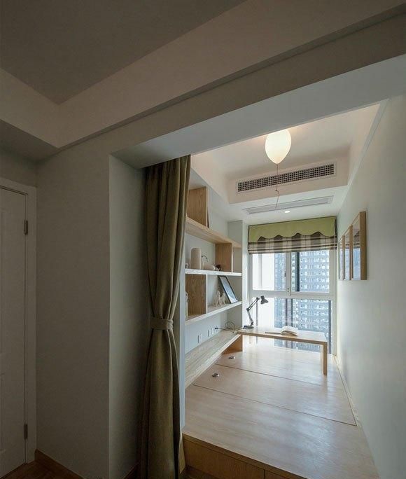 多功能儿童房设计最为实用,狭长的空间被分成两个功能区,榻榻米设计的书房区不仅可以满足学习要求,还能当临时客房使用。
