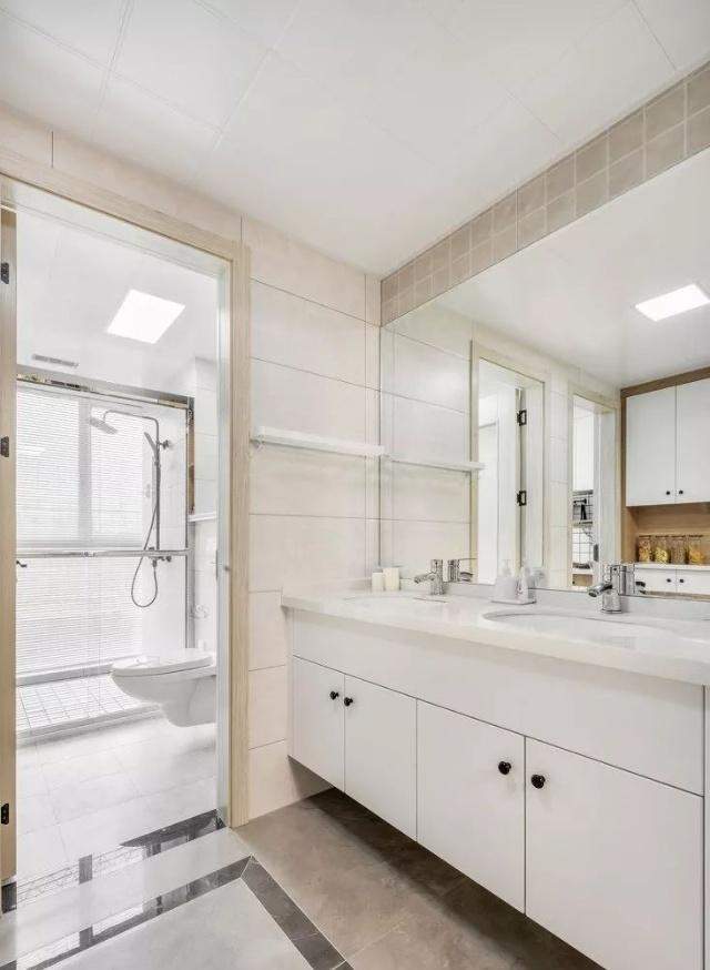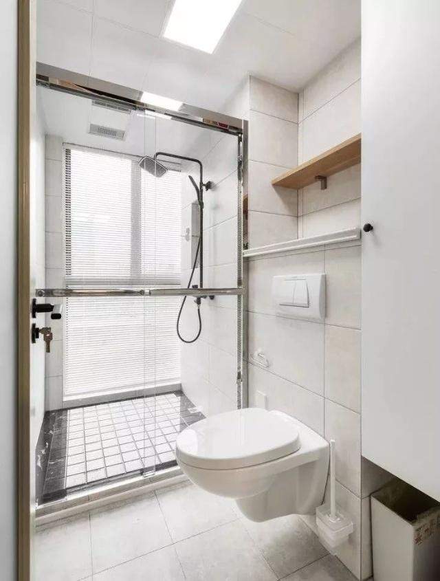 淋浴间分区设计、壁挂式马桶假墙收纳布局,都提升了卫浴空间的实用性和舒适度,也让这个清新精致的小家更完美!
