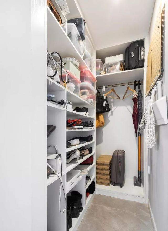 主卧衣柜门内暗藏玄机,打开柜门里面是一个步入式独立衣帽间,细分的收纳布局,可以为女主人心爱的各季衣物、鞋子、包包等分类收纳提供充足的空间。