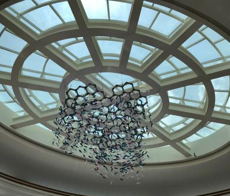 110亿建个度假区,网友戏称“贫穷限制了你的想像力”。先来看看酒店大堂,室内的大型玻璃艺术作品,是由捷克工坊专为酒店定制,非常漂亮。