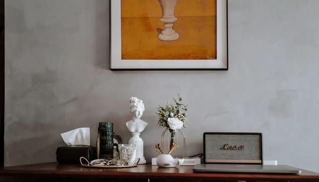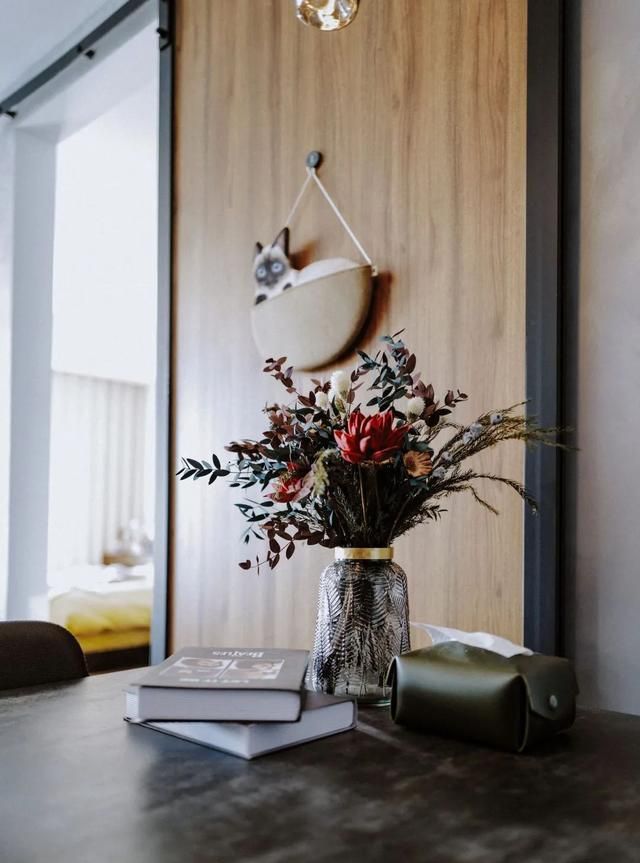 没有像传统书房那样,放置书桌,因为考虑到现在在书桌上办公的场景不太多,又有点占地方,所以放了一张长桌,摆上几本书,还有一点装饰品,成为一道特别的风景线。