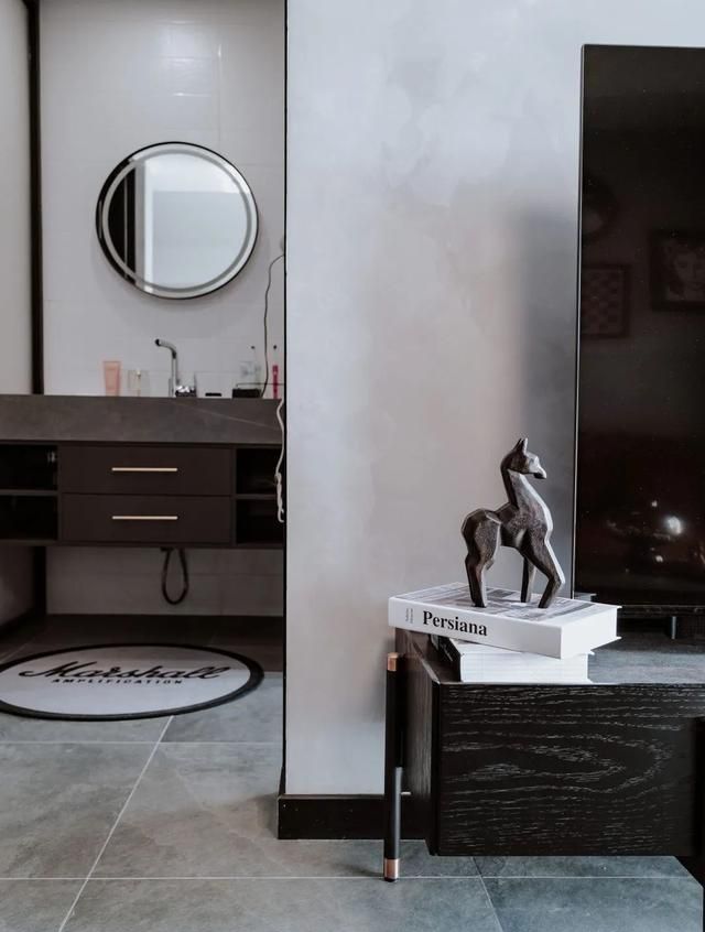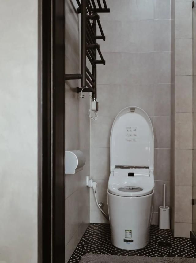 卫生间设计就比较简单,采用的都是黑白灰的砖。