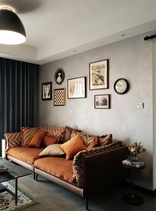 太喜欢这款沙发了,一眼相中,放在这套房子里,简直是点睛之笔。墙面选用的是艺术漆,会因光线,深浅不一,很有味道。