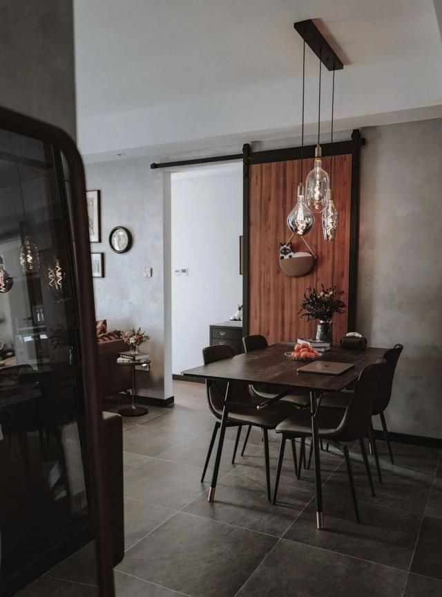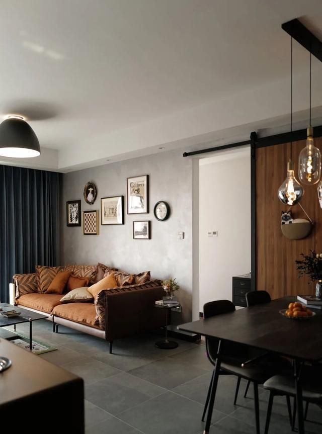 客厅的设计亮点在那扇谷仓门,打开或者关上,都是一道风景。