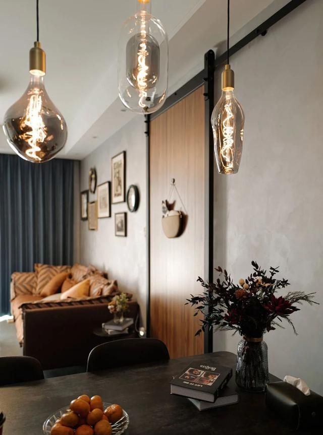 餐厅的亮点是餐桌上的一组灯具,来自一个非常有品味的小店,每个灯都有一个属于自己的名字。