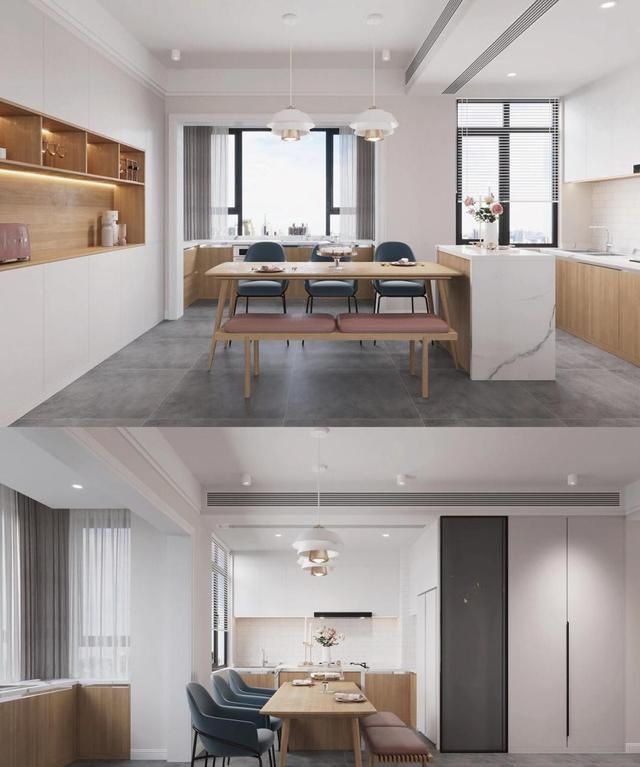 28、使用冷色系设计,暖色会让厨房看起来更热。