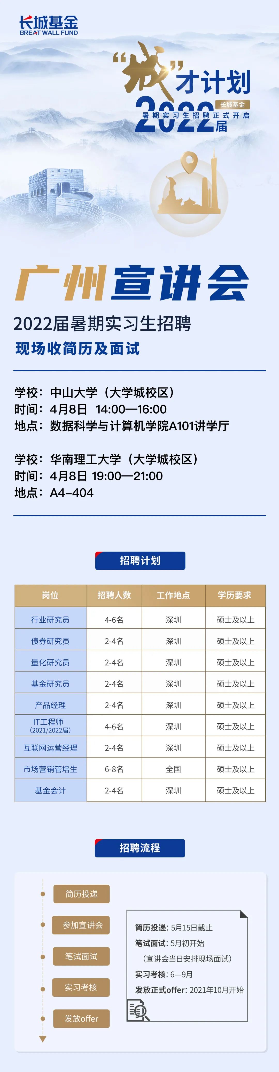 长城基金2022届暑期实习生招聘 | 广州宣讲会