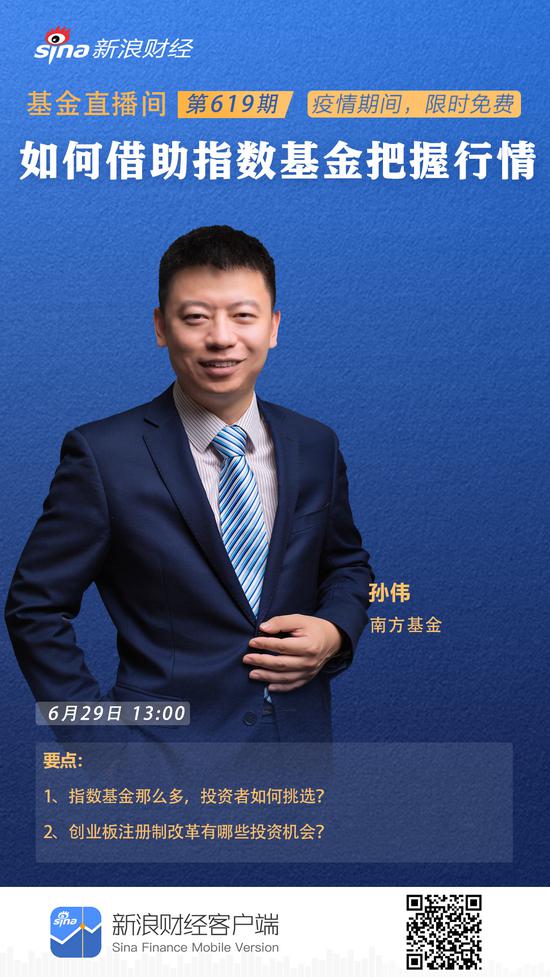6月29日 13:00南方基金孙伟:如何借助指数基金把握行情。