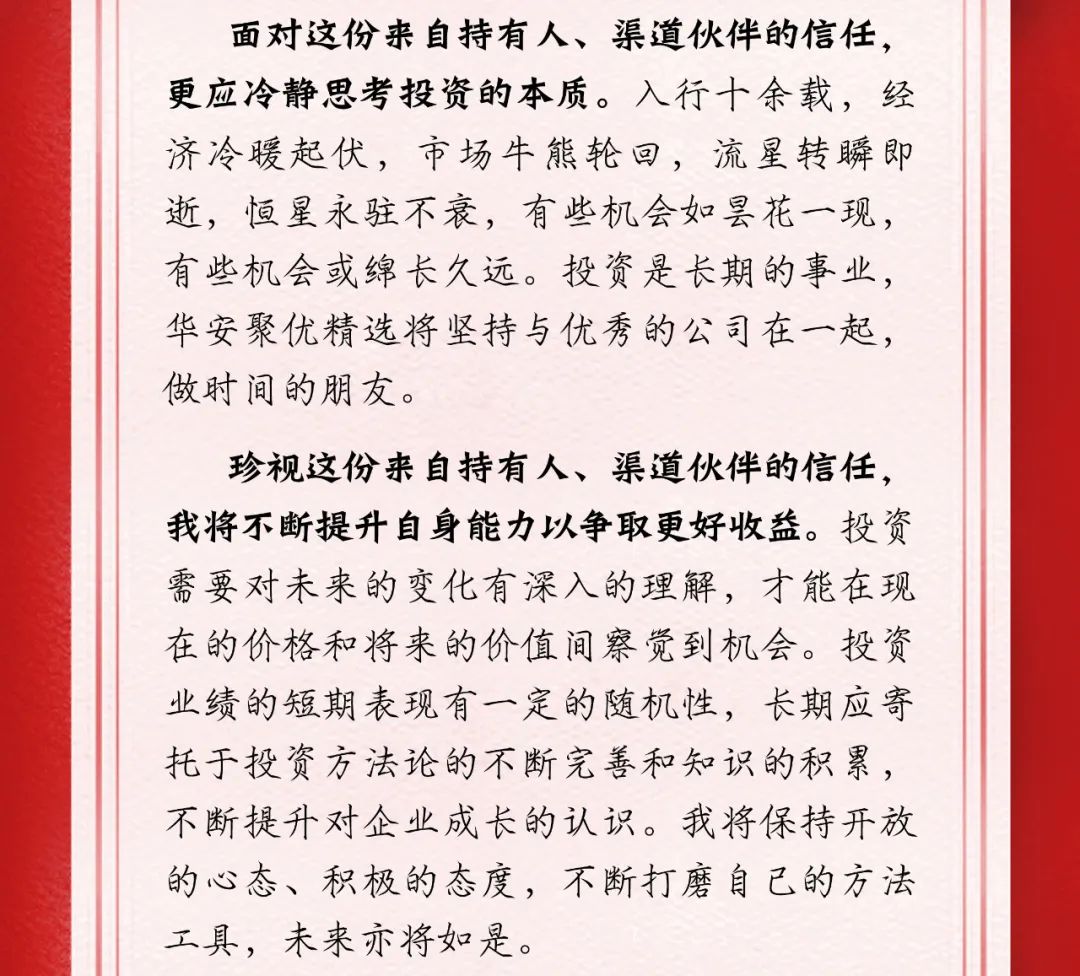 为一份信任,心怀感恩,为您的重托,日夜兼程 | 华安聚优精选今日结束募集