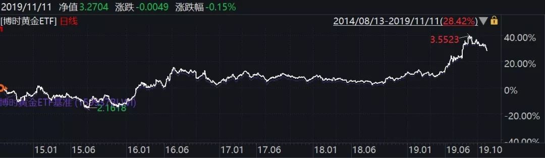 博时黄金ETF基金(159937)于2014年8月13日成立,通过投资于上海黄金交易所的黄金现货合约,百分百跟踪金价,每 1 份基金份额对应 0.01 克黄金。受益于近期金市上涨,博时黄金ETF基金今年以来净值上涨 18.96%,以博时黄金ETF为主要投资对象的博时黄金ETF联接(A002610 C002611)今年以来净值分别上涨 18.67、18.27%,投资者可在博时基金APP、博时基金微信号、博时基金官网等官方渠道及蚂蚁财富、天天基金等外部渠道购买,最低1元起买,部分渠道买入0费率(具体以各渠道公告为准),进一步丰富了广大投资者对黄金的投资方式。(数据来源:银河证券/截至20191227)